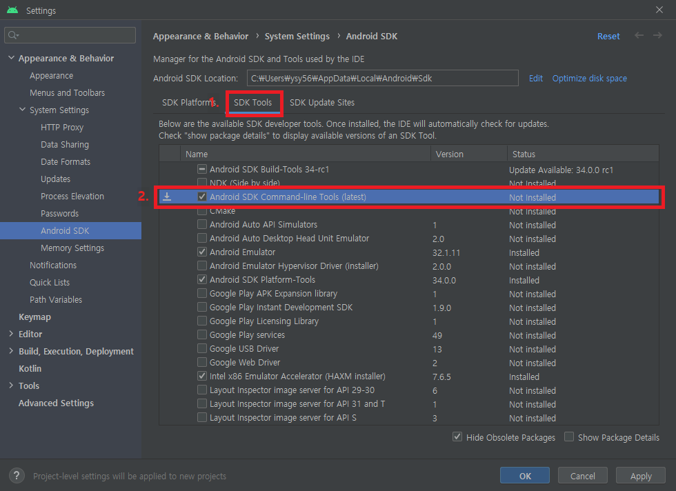 2. Android SDK Command-line Tools(latest)를 선택한다.