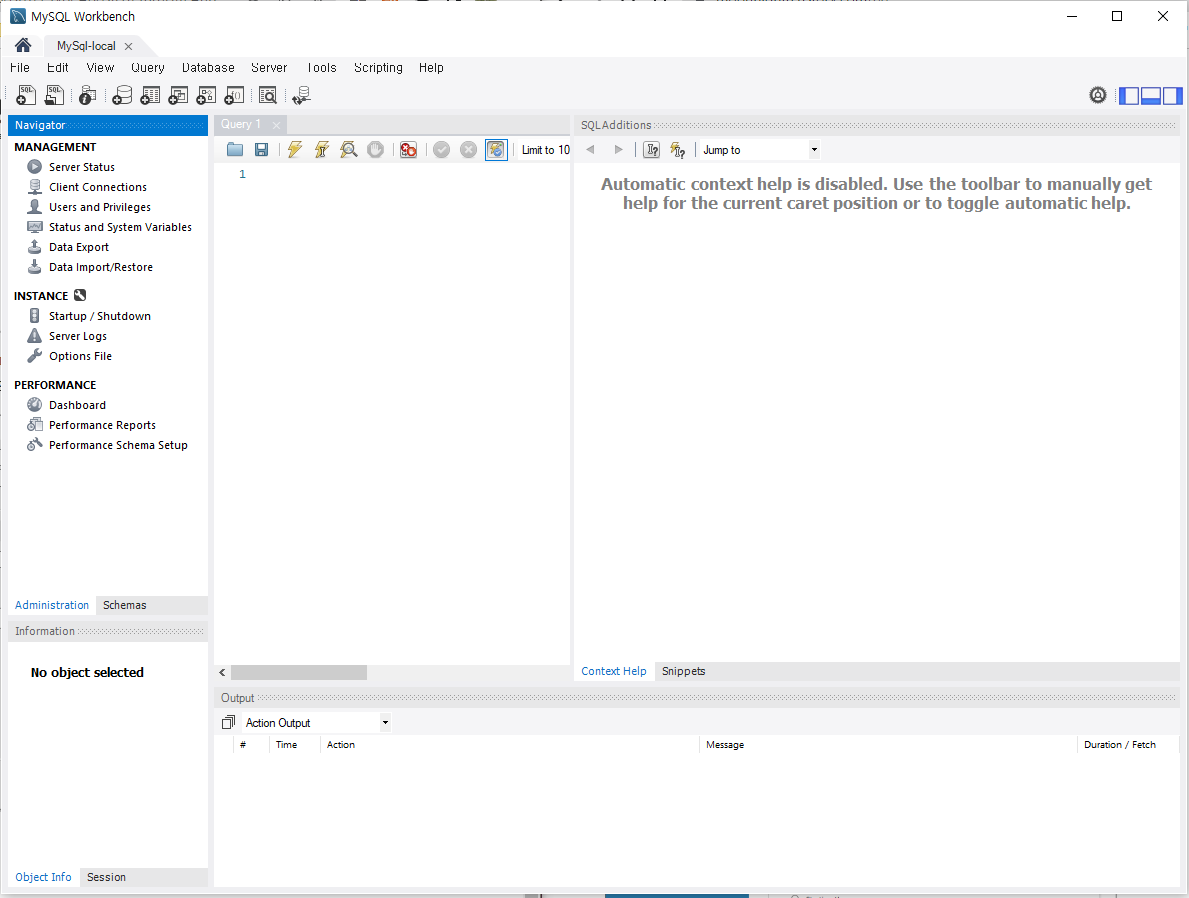 MySQL Workbench 처음 실행했을 때의 화면으로 돌아온다.