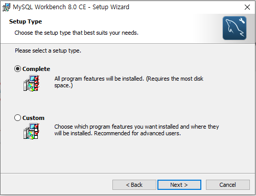 다운로드 받아진 파일(mysql-workbench-community-8.0.23-winx64.msi)을 실행하면 아래와 같은 화면이 뜬다.